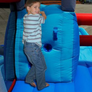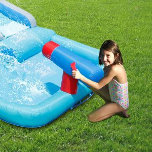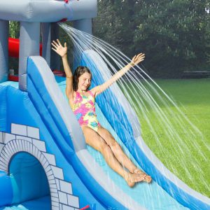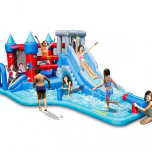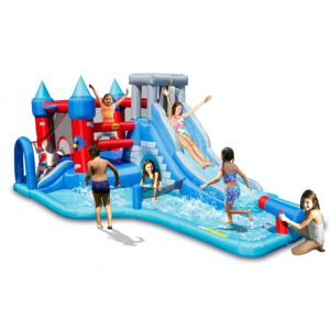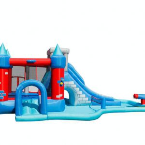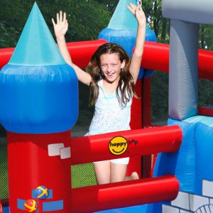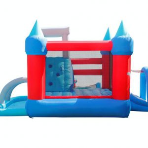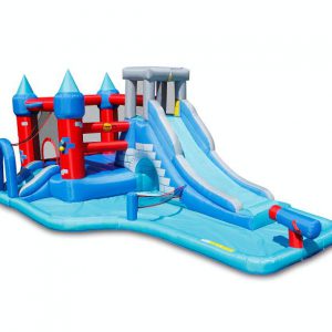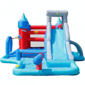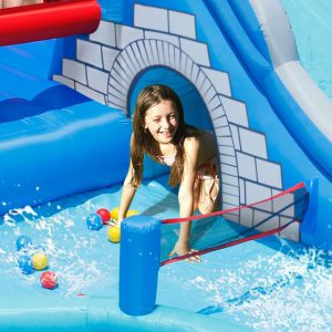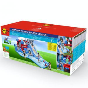 • Csomag tartalma: légvár + befúvó motor + szállító táska + rögzítő cövekek + javító készlet + vízcső + 30 db kislabda
