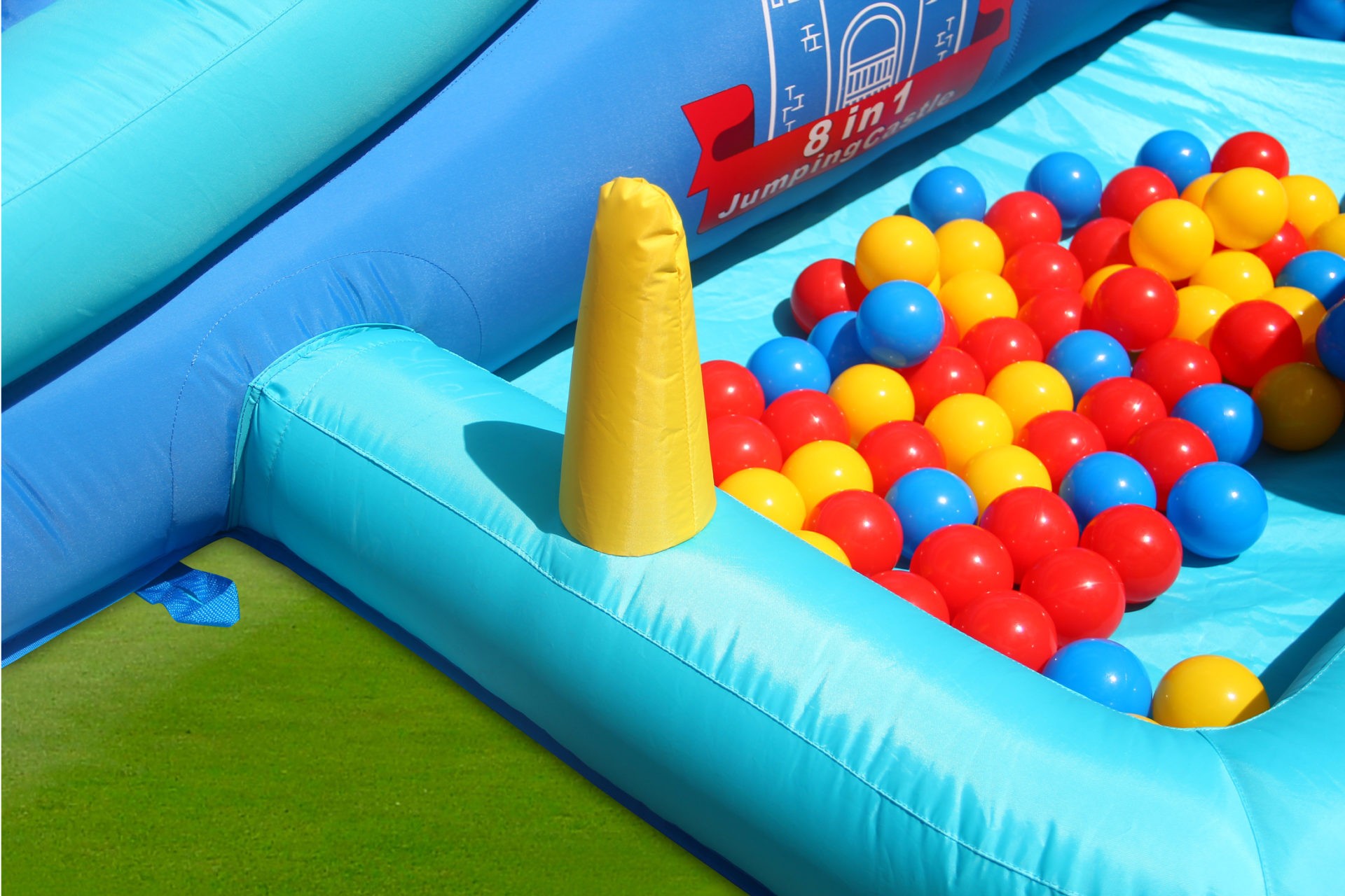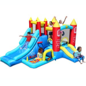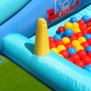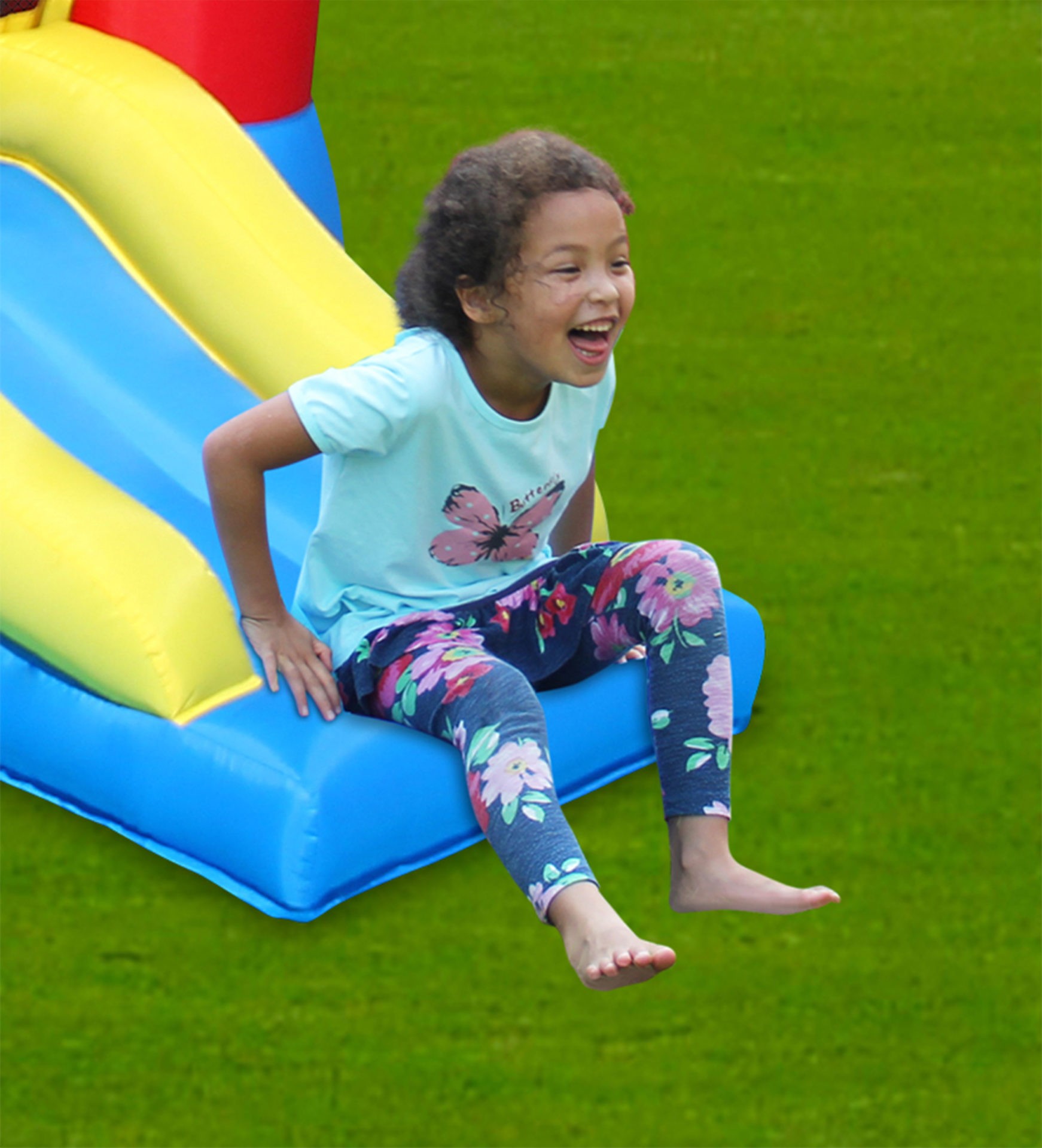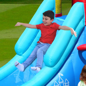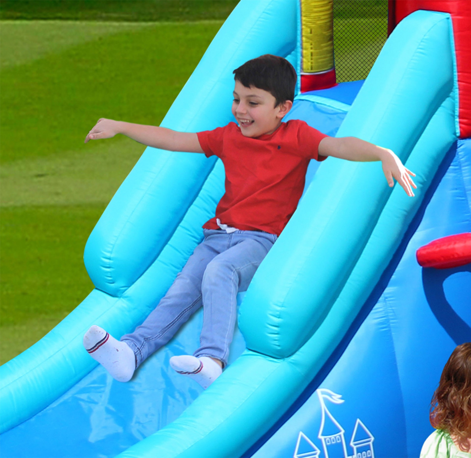 Ez a vidám színekkel, kastélyos mintával rendelkező légvár mind bel- mind kültéren kiválóan használható. A két csúszda, a kosárpalánk, a labdatenger és a különféle célbadobási lehetőségek extra élményt nyújtanak a gyerekeknek. Unalmas, esős és hideg napokon akár a szobában is felállítható.